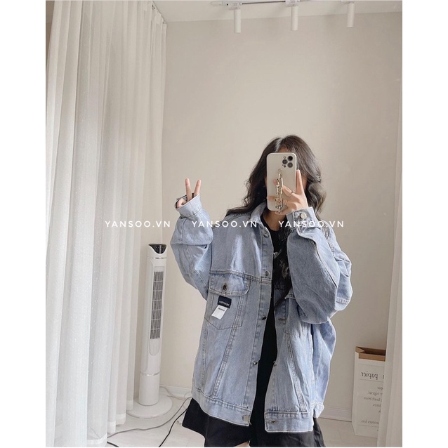 Áo khoác jean from rộng tag logo dưới túi , áo khoác bò xanh demin và màu đen oversize Quảng Châu YANSOO