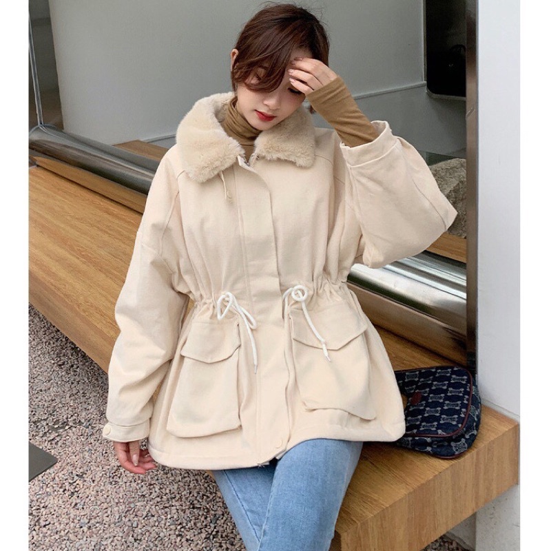 Giới thiệu Áo Khoác Kaki Đại Hàn Nữ Hàn Quốc Lót Lông Dáng Rộng Cổ Bẻ 3 Màu Siêu Xinh