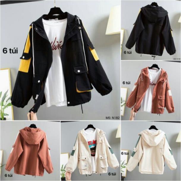 Áo khoác kaki túi hộp nữ 6 túi phối màu đẹp may 2 lớp chống nắng tốt
