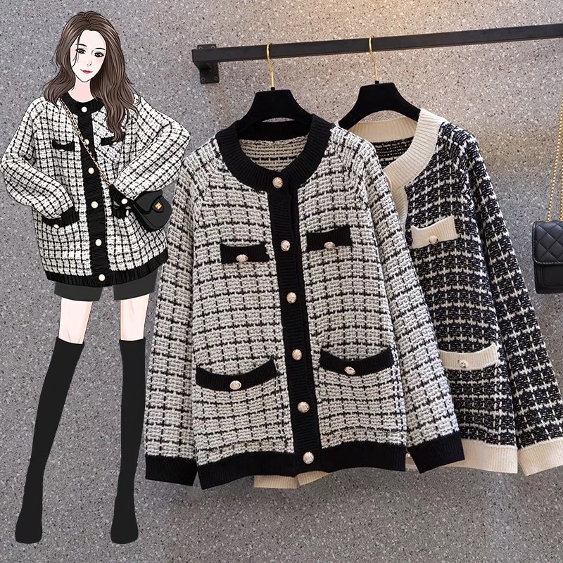 Thời Trang Nữ > Áo khoác > Áo khoác mùa đông || Áo Khoác Len Cardigan Kẻ Caro Viền Cực Xinh