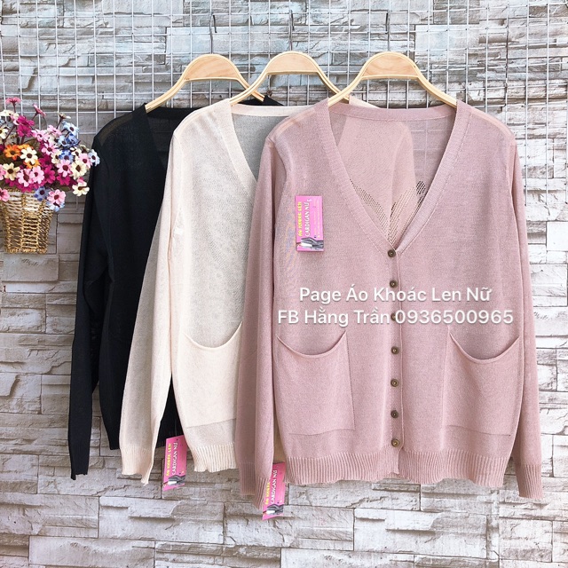 Áo khoác len mỏng cổ tim hai túi hàng cao cấp .