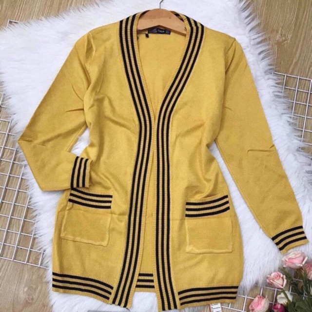 Áo khoác len viền cổ túi dáng dài màu sắc như hình.