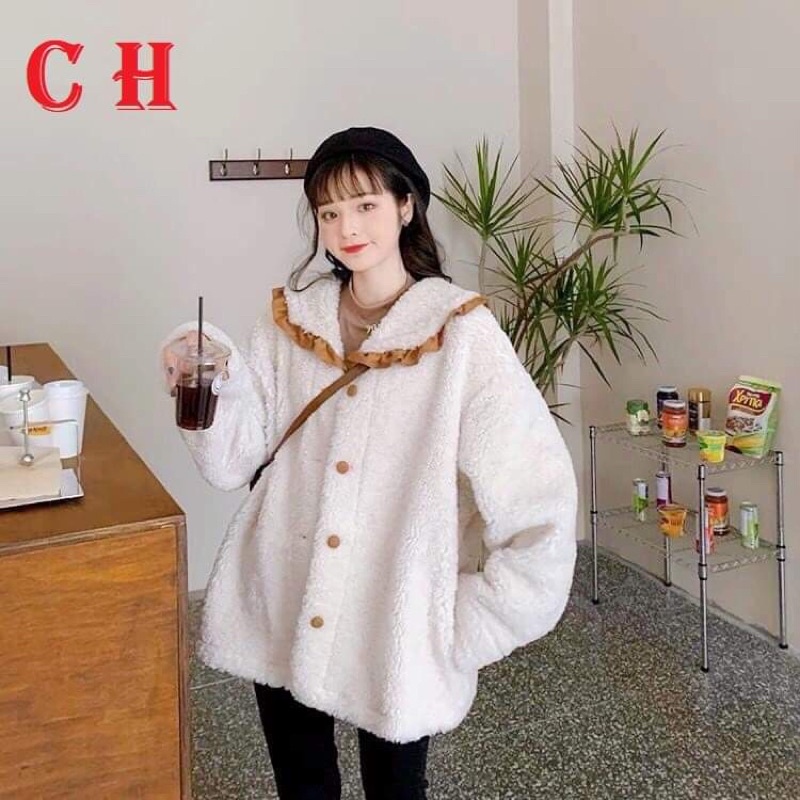 Giới thiệu Áo Khoác Lông Cadigan Viền Cổ Bèo Ulzzang Phong Cách Cổ Bẻ Thời Trang Mùa ĐôngSweater Cúc Cài Unisex Hàn Quốc vintage