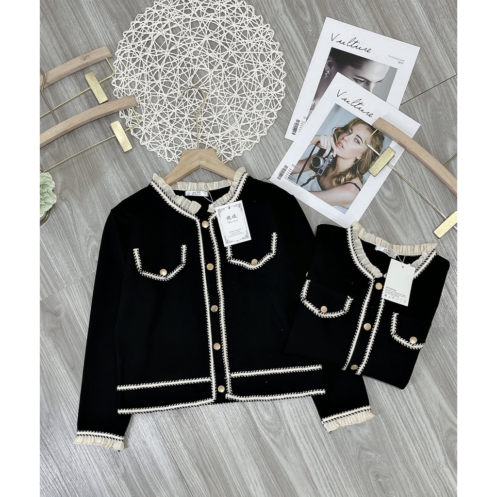 Giới thiệu Áo khoác nhung viền thừng túi hộp cổ bèo