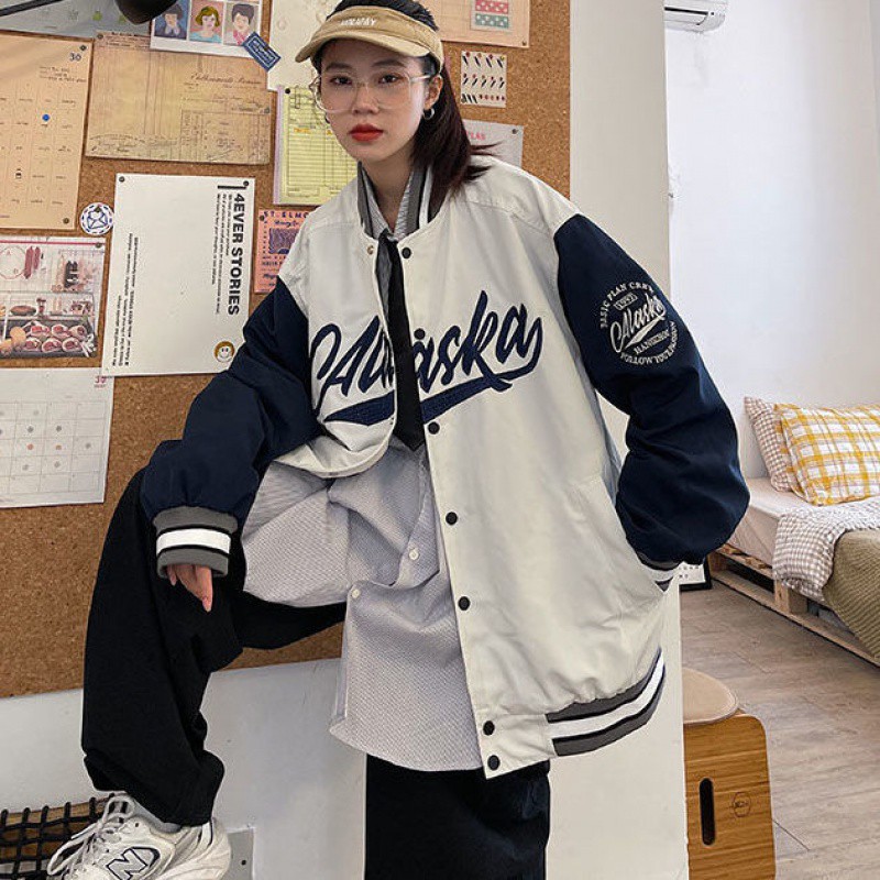 Áo Khoác Nữ Bomber Form Rộng Chất Liệu Dù - Áo Khoác Bomber Dù Khuy Bấm Phối Tay Ulzzang