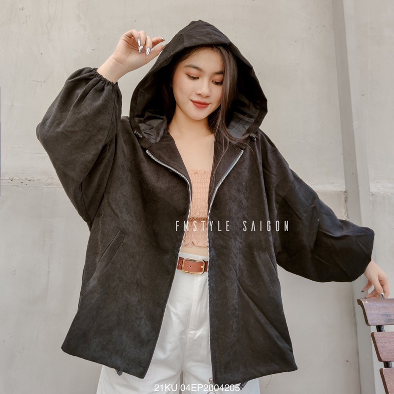 - Tên sản phẩm: Áo khoác nữ form rộng chống nắng có mũ, áo gió nhung tăm hai lớp rút gấu thời trang unisex Fmstyle Saigon 21KU04EP2004