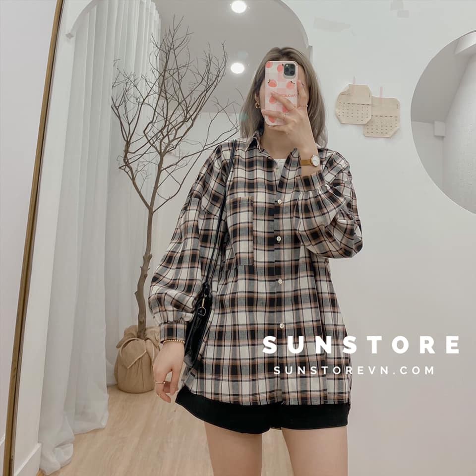 Áo khoác sơ mi form rộng kẻ caro 4 màu