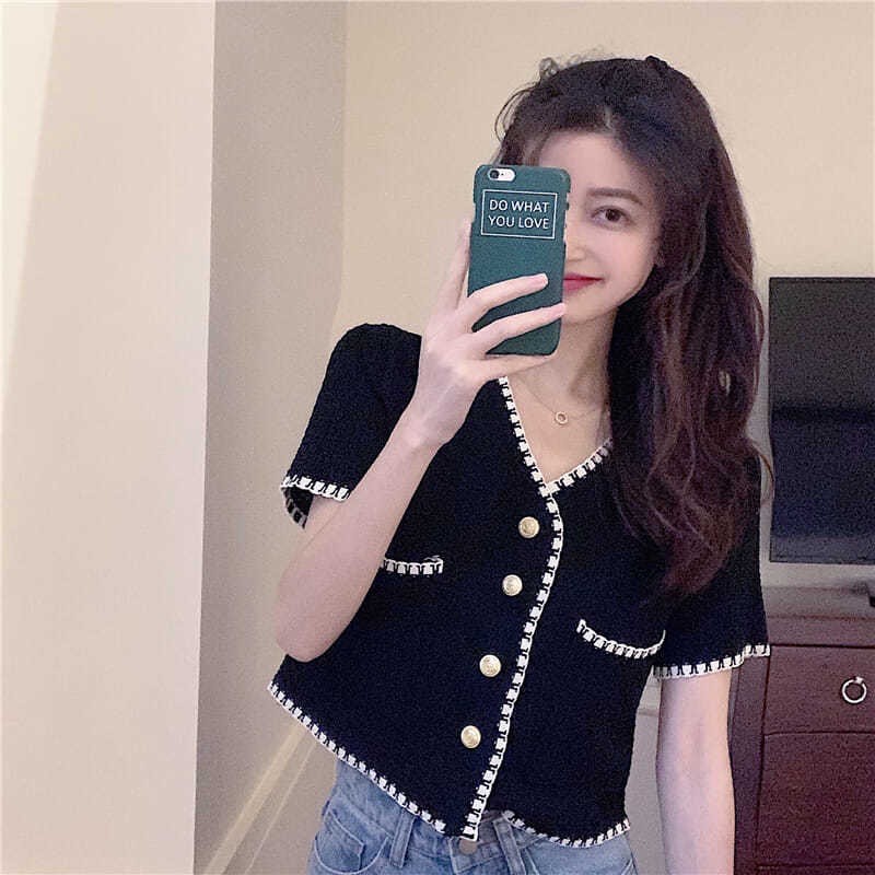 Thời Trang Nữ > Áo > Áo sơ mi || Áo kiểu cổ V ngắn tay, áo sơ mi kiểu ngắn tay nữ có khuy