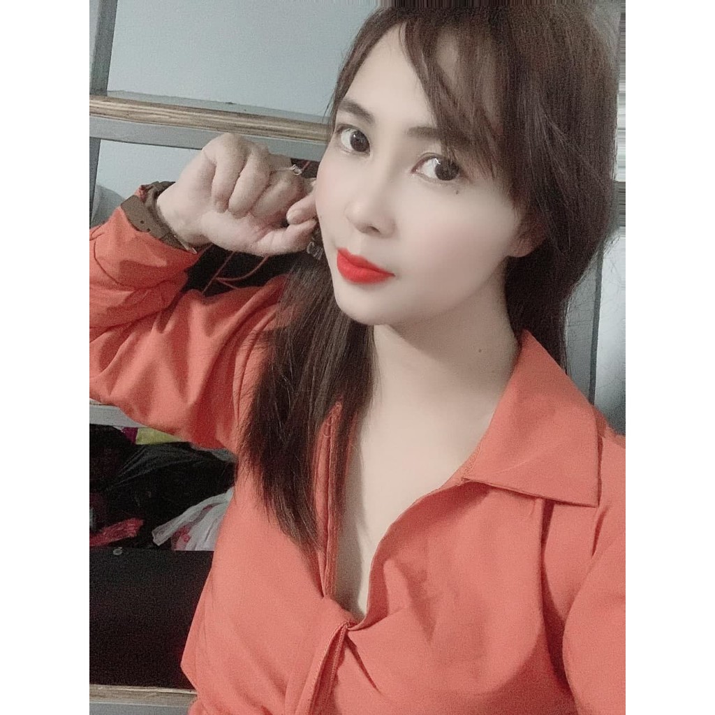 Size : freesize dưới 54kg bận đẹp, tay áo dài , cổ sơ mi , bo nhúng phần lai áo ,có dây rời tự cột thắt nơ tạo điểm nhấn, dài áo 43cm