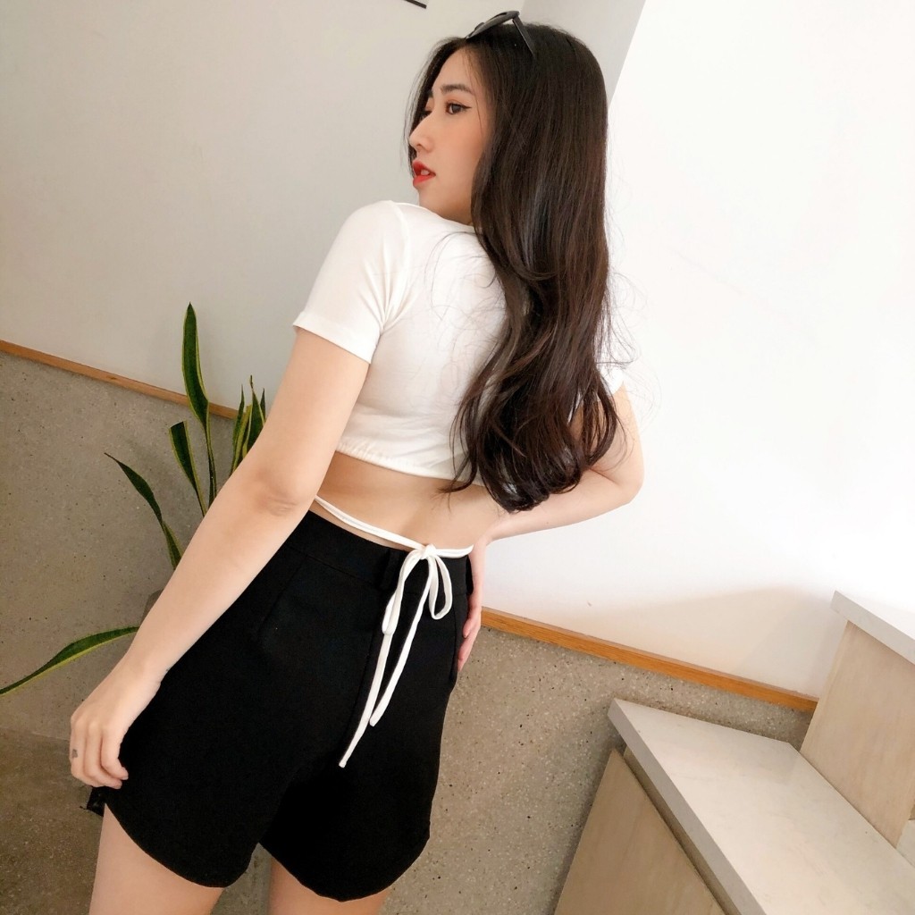 Giới thiệu Áo Kiểu Croptop Tay Ngắn, Rút Dây Sau Lưng, Chất Borip Mịn Mát Freesize 53kg Ảnh Thật