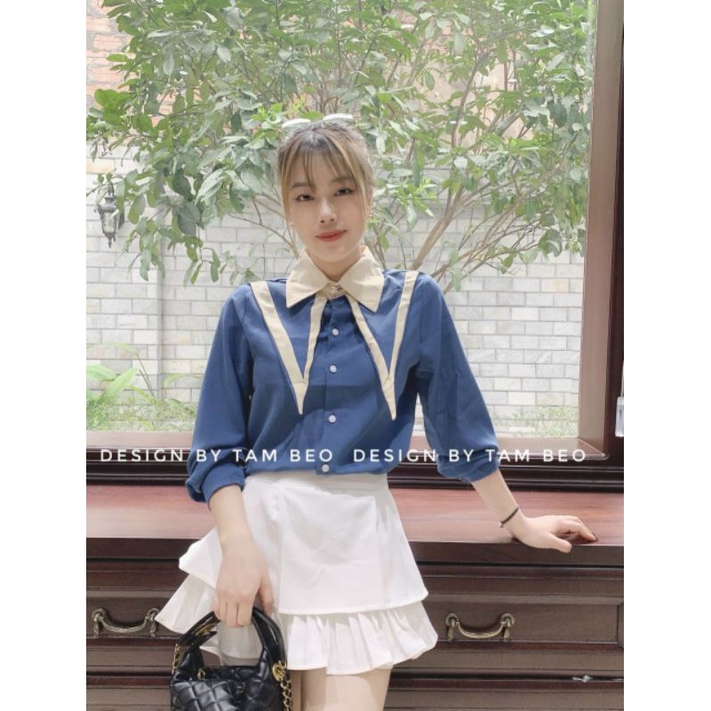 Siêu Phẩm Áo dài tay, cổ phối viền chữ V siêu xinh
