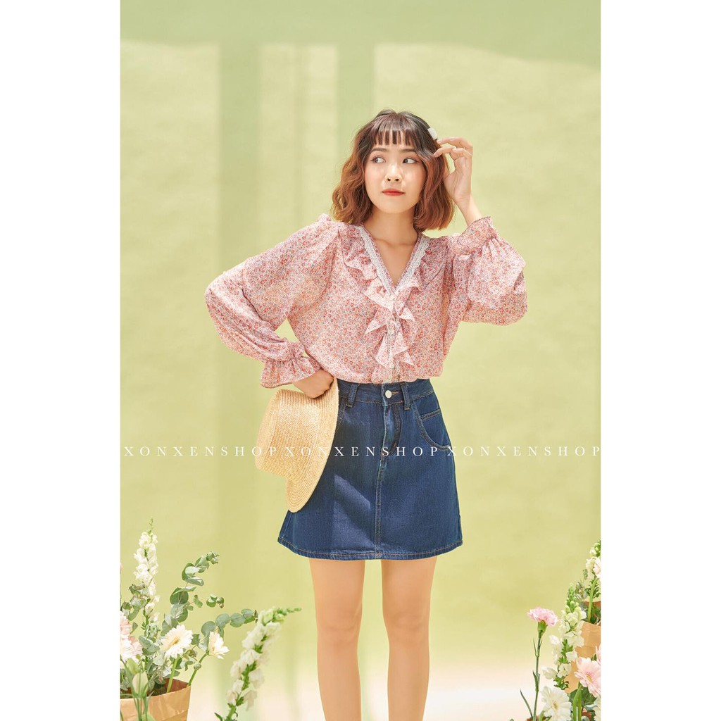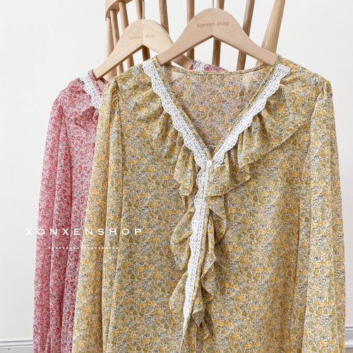 Áo kiểu hoa nhí viền ren chất vải voan nhẹ nhàng Xonxen shop free size mã 9033