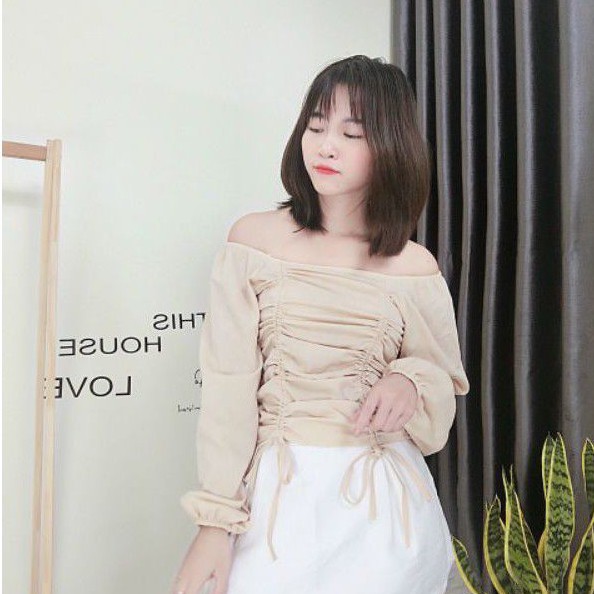 Áo Kiểu Nữ Có Dây Rút, Dài Tay, Chất Đũi Mặc 2 Kiểu