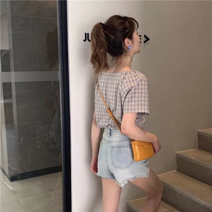 Áo Kiểu Nữ Cổ Vuông Sọc Caro Xinh Đẹp