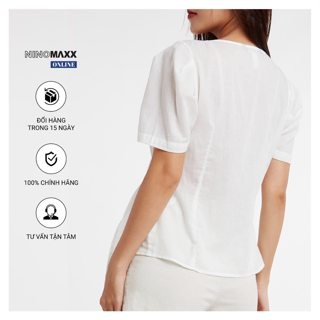 Giới thiệu Áo Kiểu Nữ Ninomaxx Đắp Vạt Chéo Tay Phồng Ngắn mã 2003149