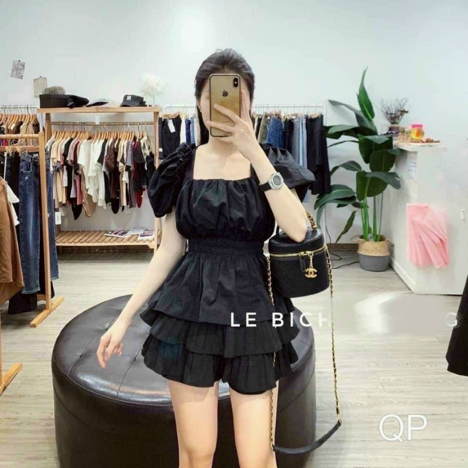 Giới thiệu Áo kiểu nữ peplum cổ vuông tay ngắn nhún bo eo thon Mc