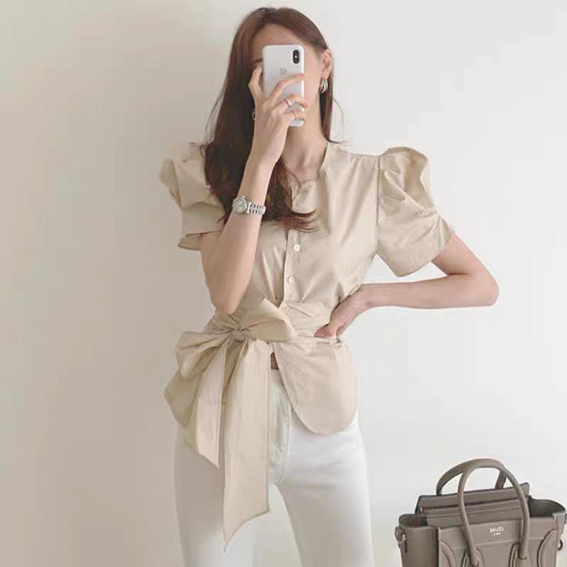 Áo kiểu nữ tay phồng nơ hông siêu hót CHIBEST AAB017