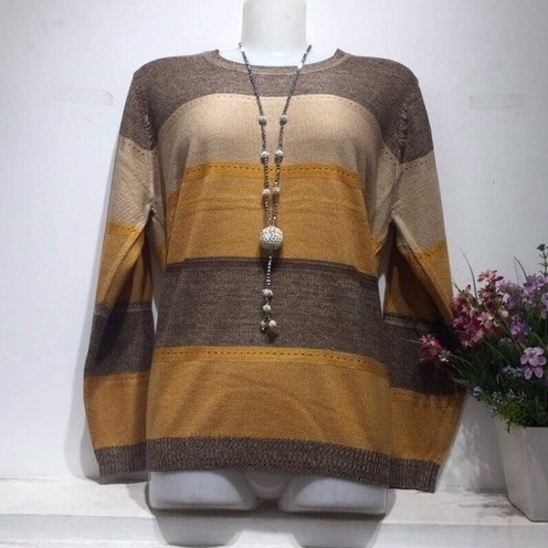 Thời Trang Nữ > Áo > Khác || Áo Kiểu Nữ Trung Niên Tay Dài Sọc Ngang Cao Cấp - Hình Thật