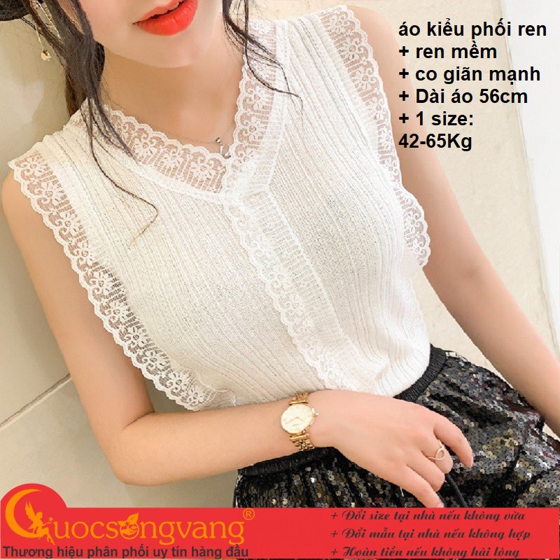 áo kiểu phối ren không tay bằng chất liệu thun mềm kết hợp ren, áo ren co giãn mạnh với kiểu thiết kế ôm nhẹ giúp tôn dáng body và thon gọn vòng eo với chất liệu sợi bông kết hợp với viscose tạo nên chất liệu thoáng mát và mượt mà với làn da