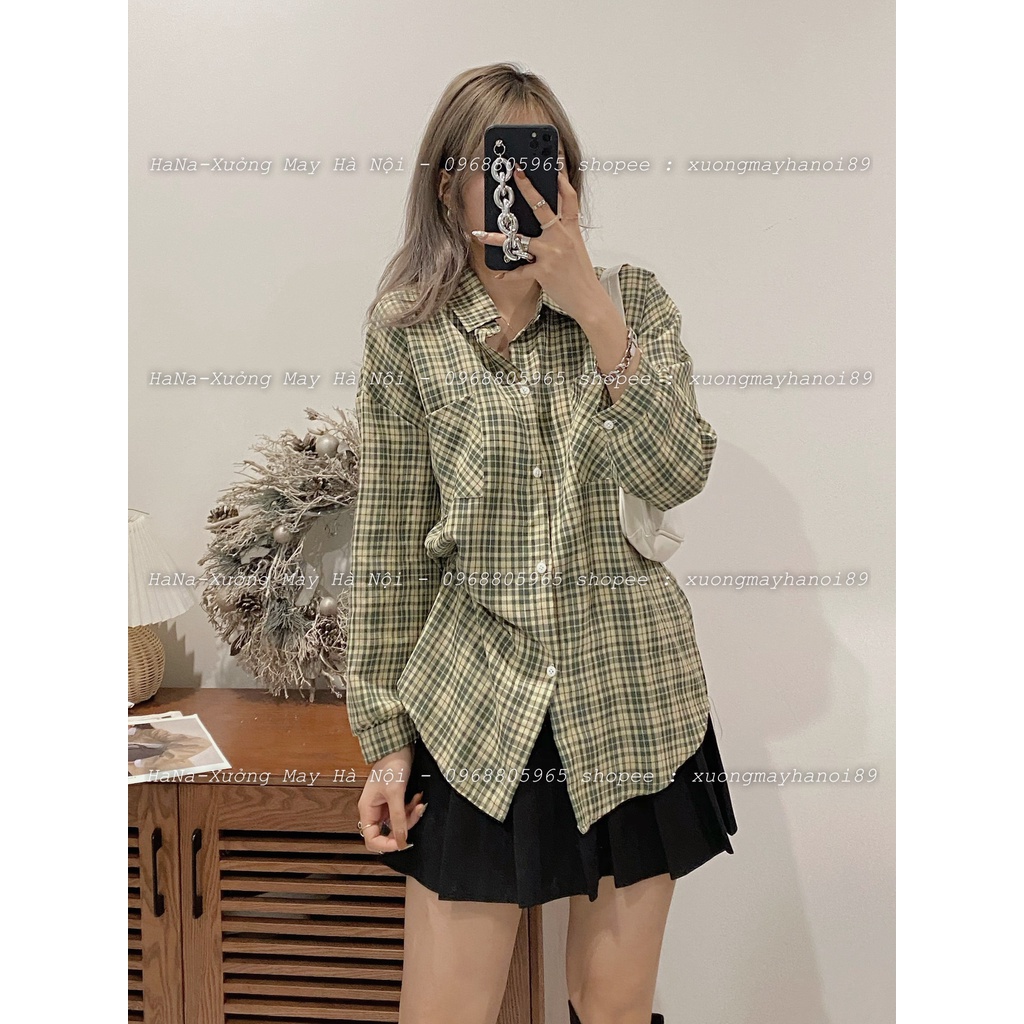 Giới thiệu [ÁO KIỂU] Sơ Mi Nữ Họa Tiết Kẻ Màu Vintage Tay Dài