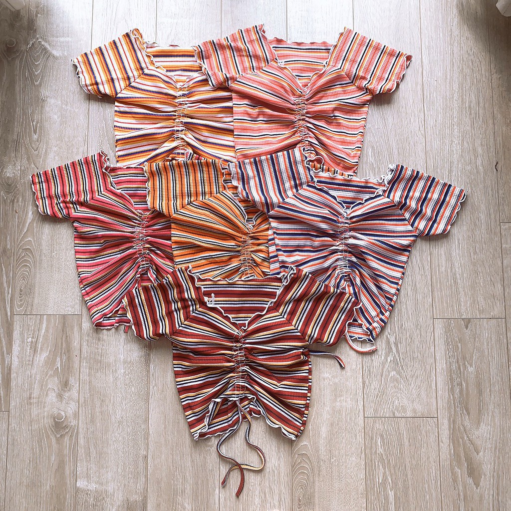 Áo kiểu sọc màu rút dây xinh xinh