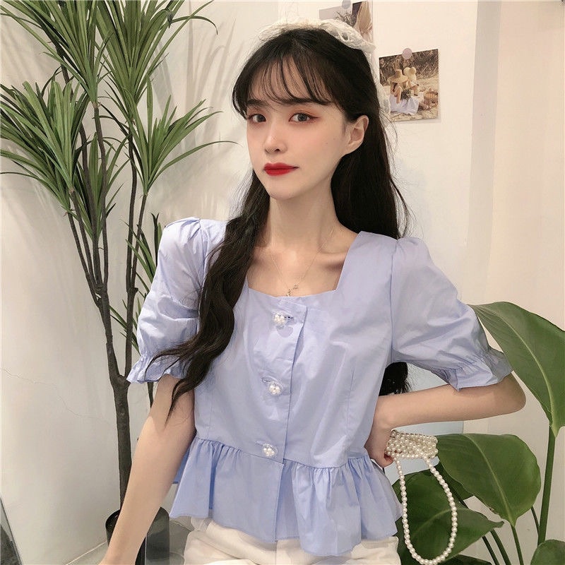 Giới thiệu Áo Kiểu Tay Phồng Cổ Vuông Phong Cách Hàn Quốc Cho Nữ
