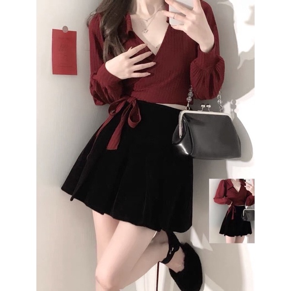 Giới thiệu áo lcrop top cổ bẻ cột nơ đắp chéo phong cách hàn quốc siêu xinh