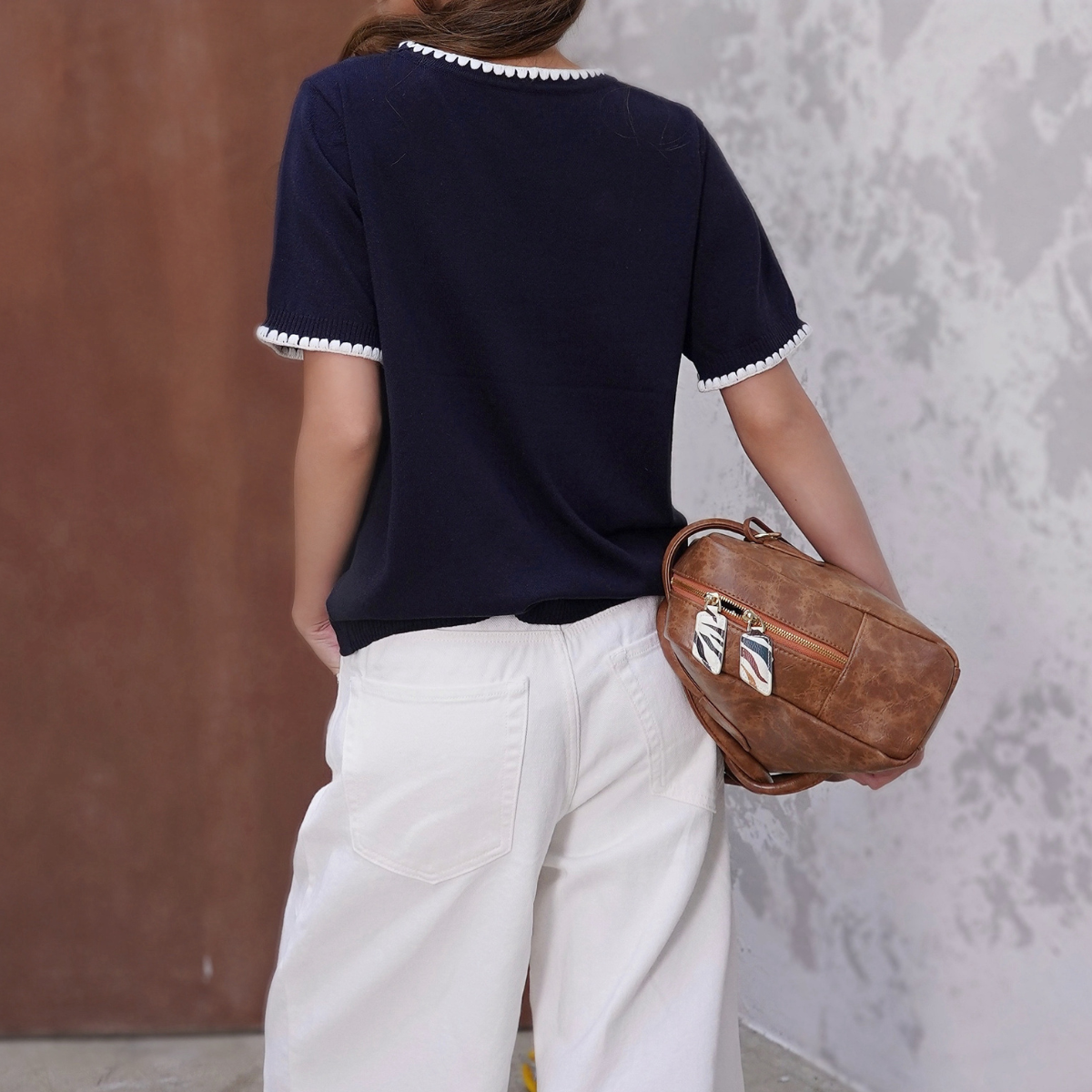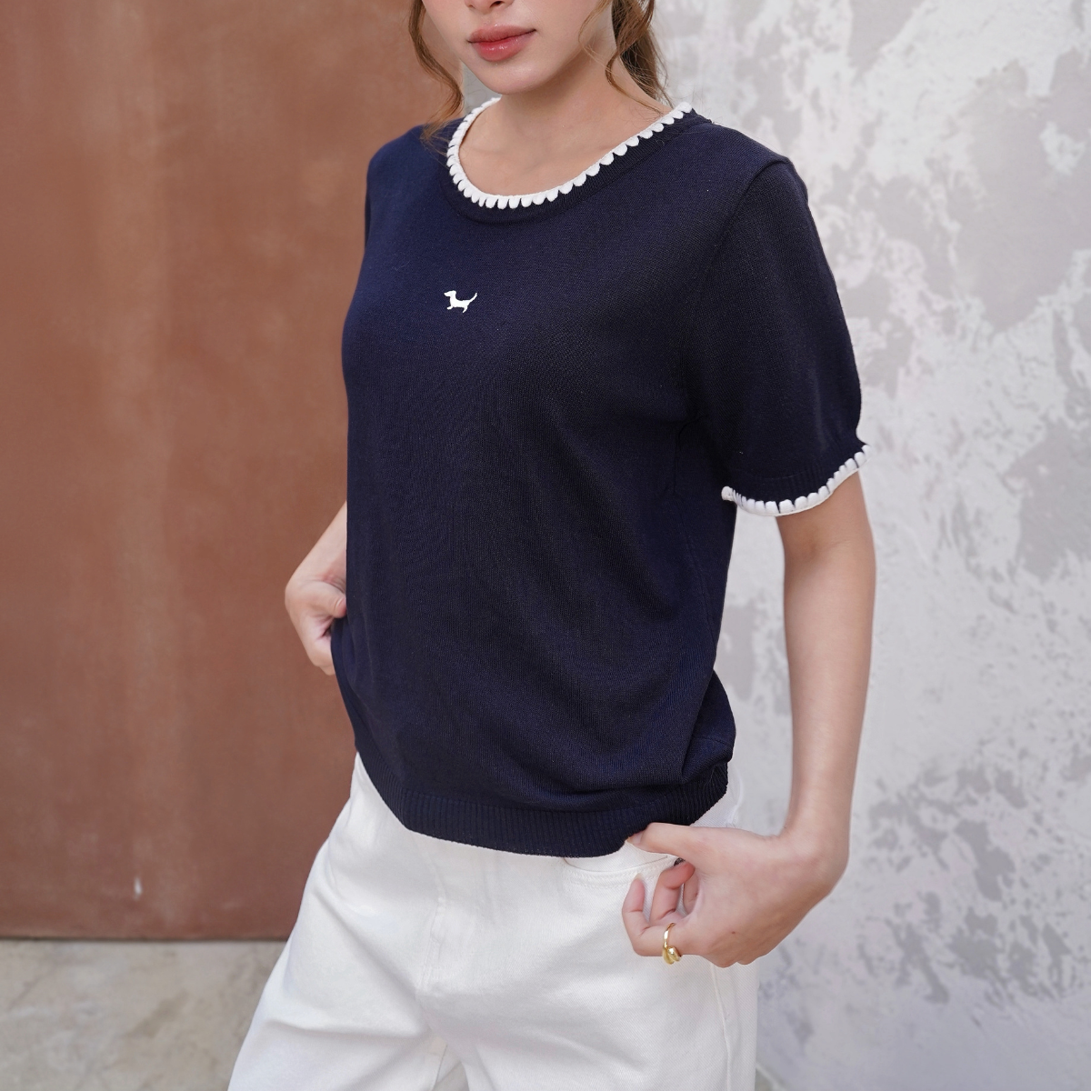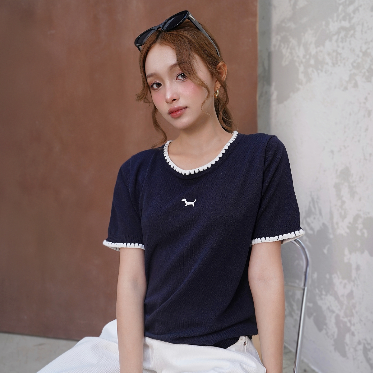 ✿ Sản phẩm : Áo len cổ tròn viền cổ nữ tính thêu hình chú chó trước Puppy Miều Est.2013