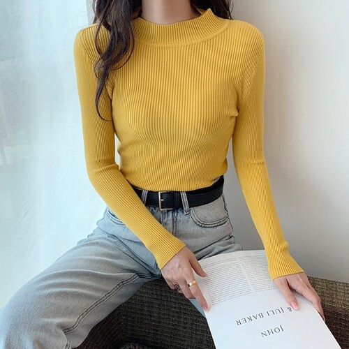 Giới thiệu Áo len nữ mỏng Hàn Quốc cổ 3 phân ôm dáng mềm mịn co giãn 4 chiều