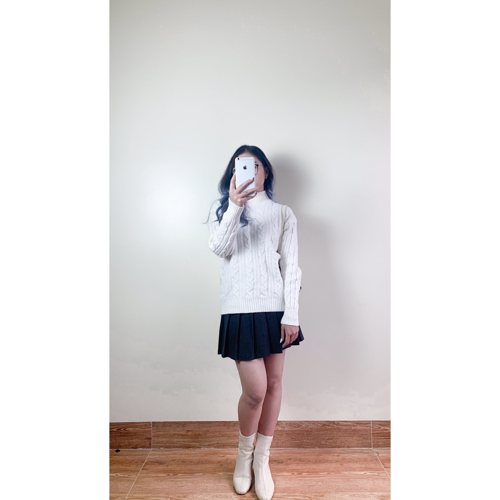 Áo len nữ trắng áo cao cổ đan thừng chất siêu đẹp F31