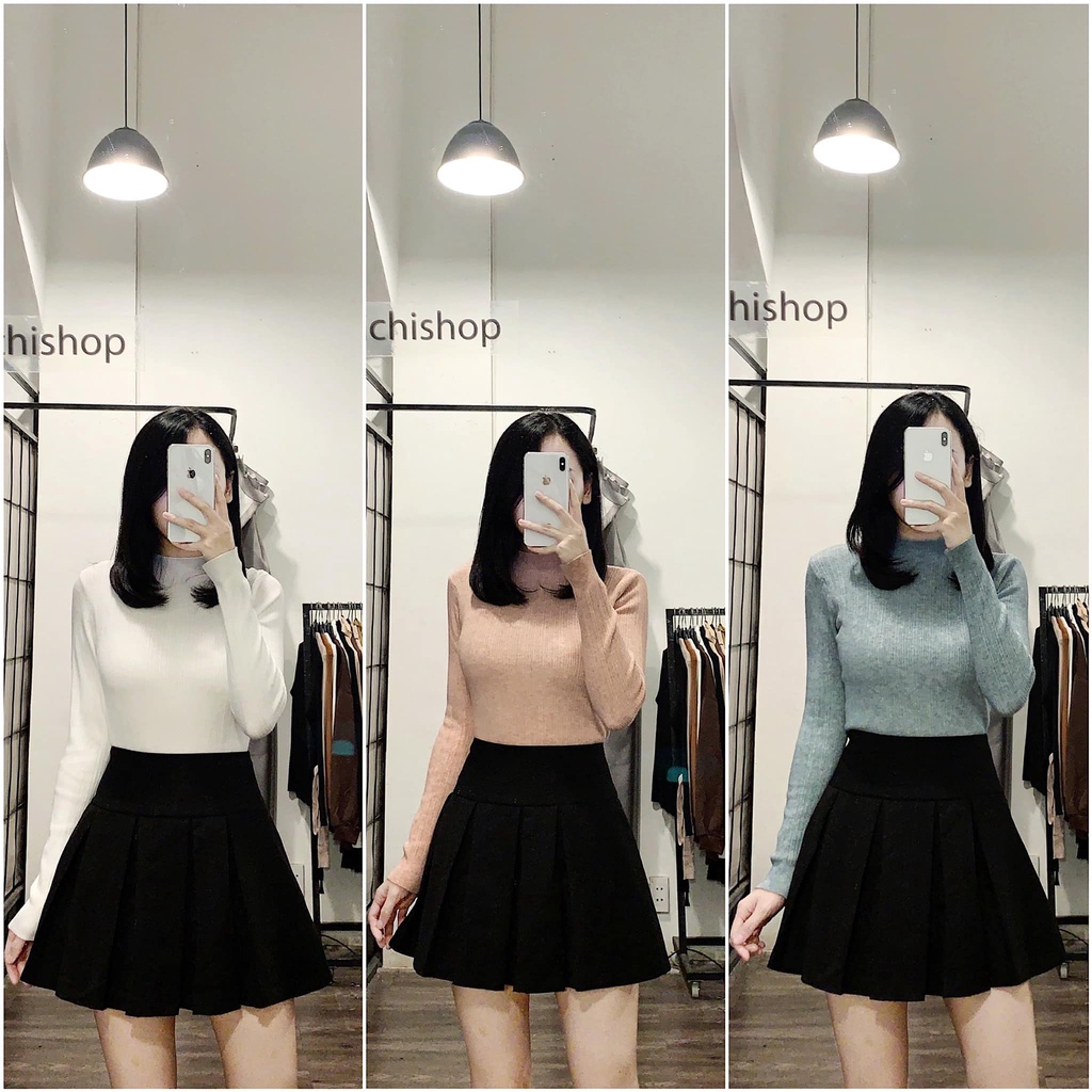 Thời Trang Nữ > Áo > Khác || Áo len tăm cổ leo dài tay freesize-83A35