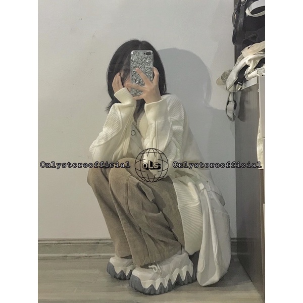 Áo len trắng cổ V và quần nhung lót bông nâu, nhận hàng có vấn đề liên hệ shop trước khi đánh giá