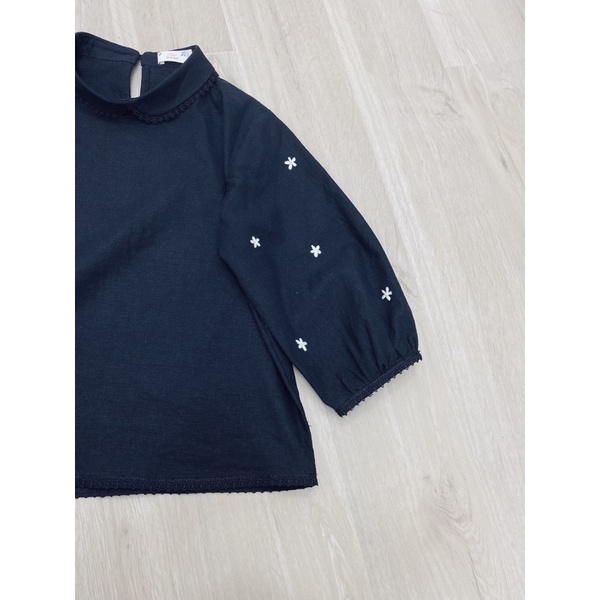 Thời Trang Nữ > Áo > Áo sơ mi || Áo linen đen thêu tay viền ren LÁ IN HOA