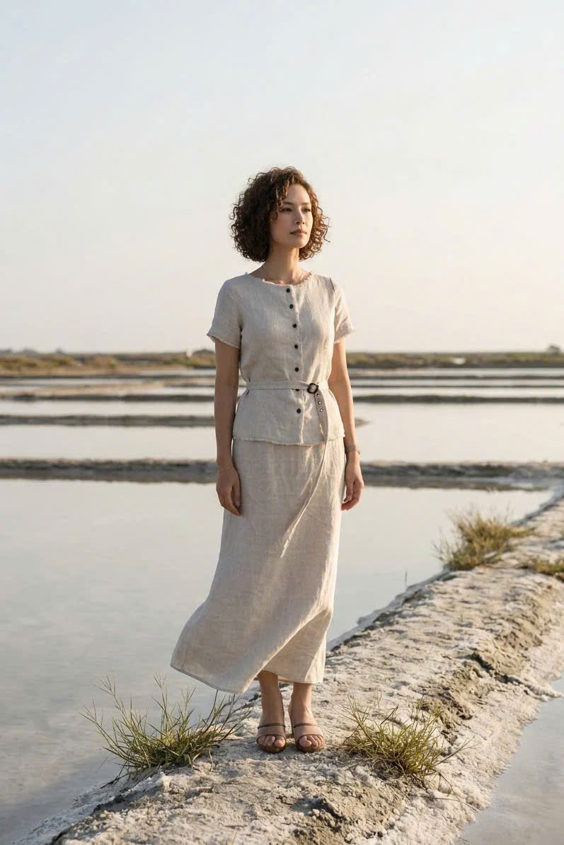 Bộ linen nhẹ, thô mộc và yên tĩnh như chính ta.