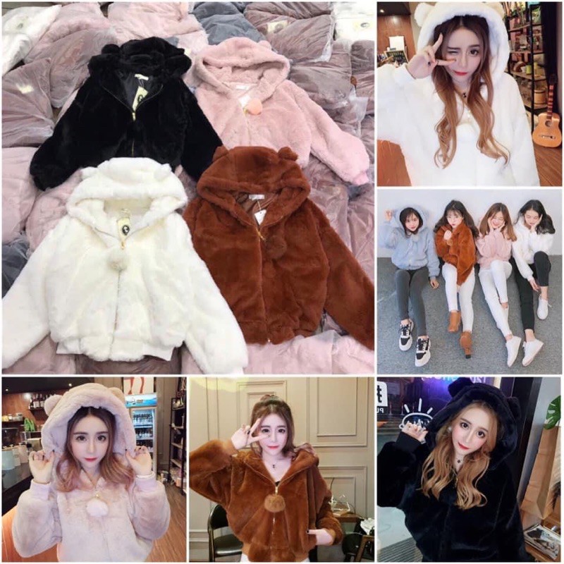 Áo Lông Nữ Tai Gấu ( 2 LỚP ) Siêu Dày Quả Bông Siêu Cute_Xuống Phố Là Xinh