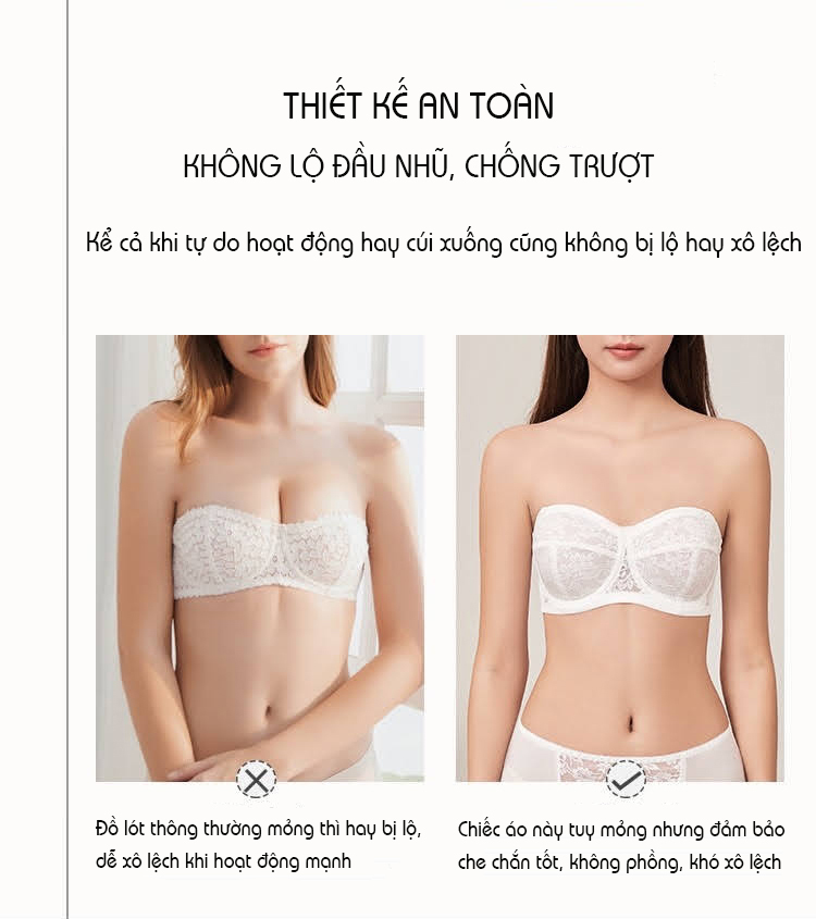 Phù hợp với các chị em có vòng 1 đầy đặn, quả áo có lớp lót bên trong, tuy không có đệm nhưng vẫn che tốt, không bị nhô lên