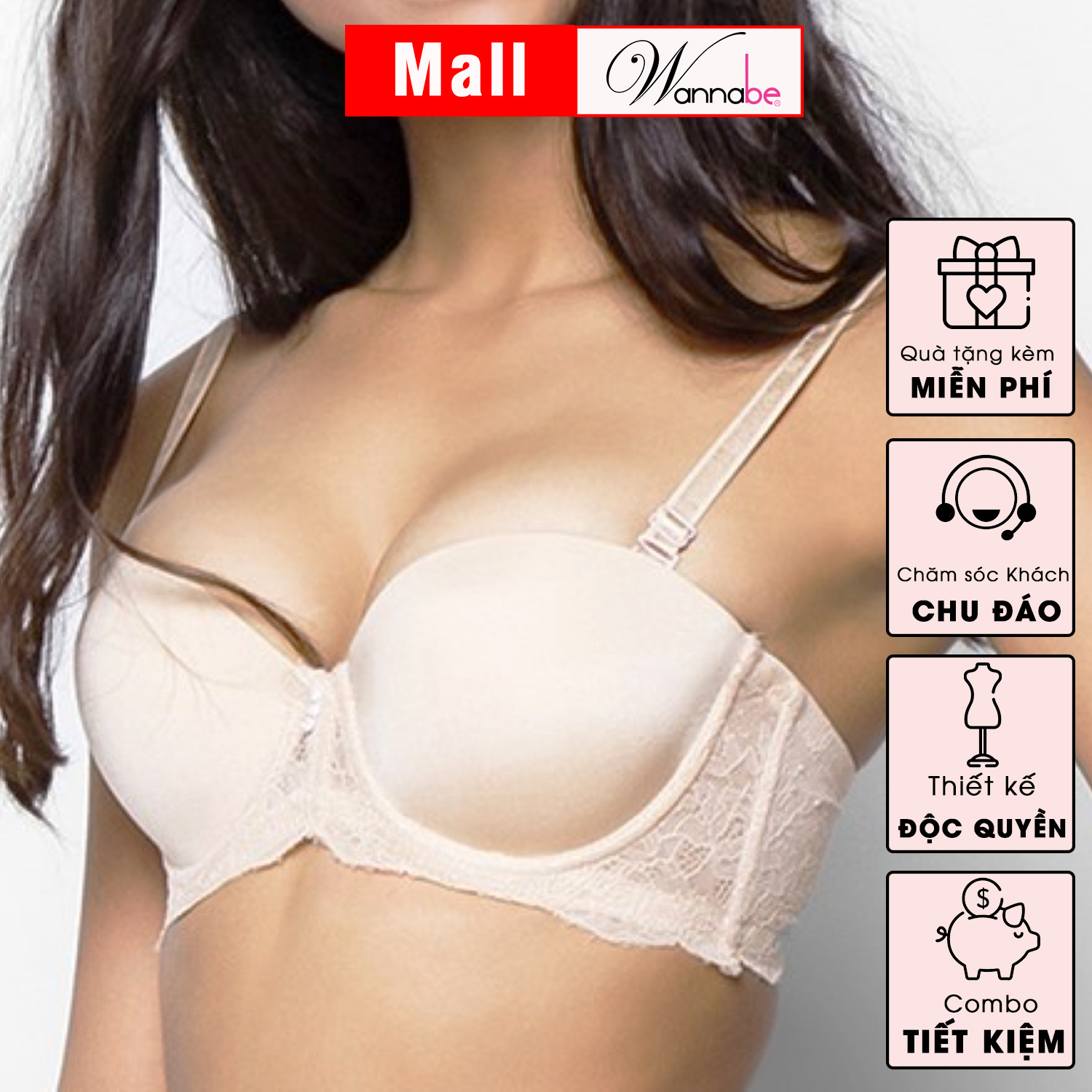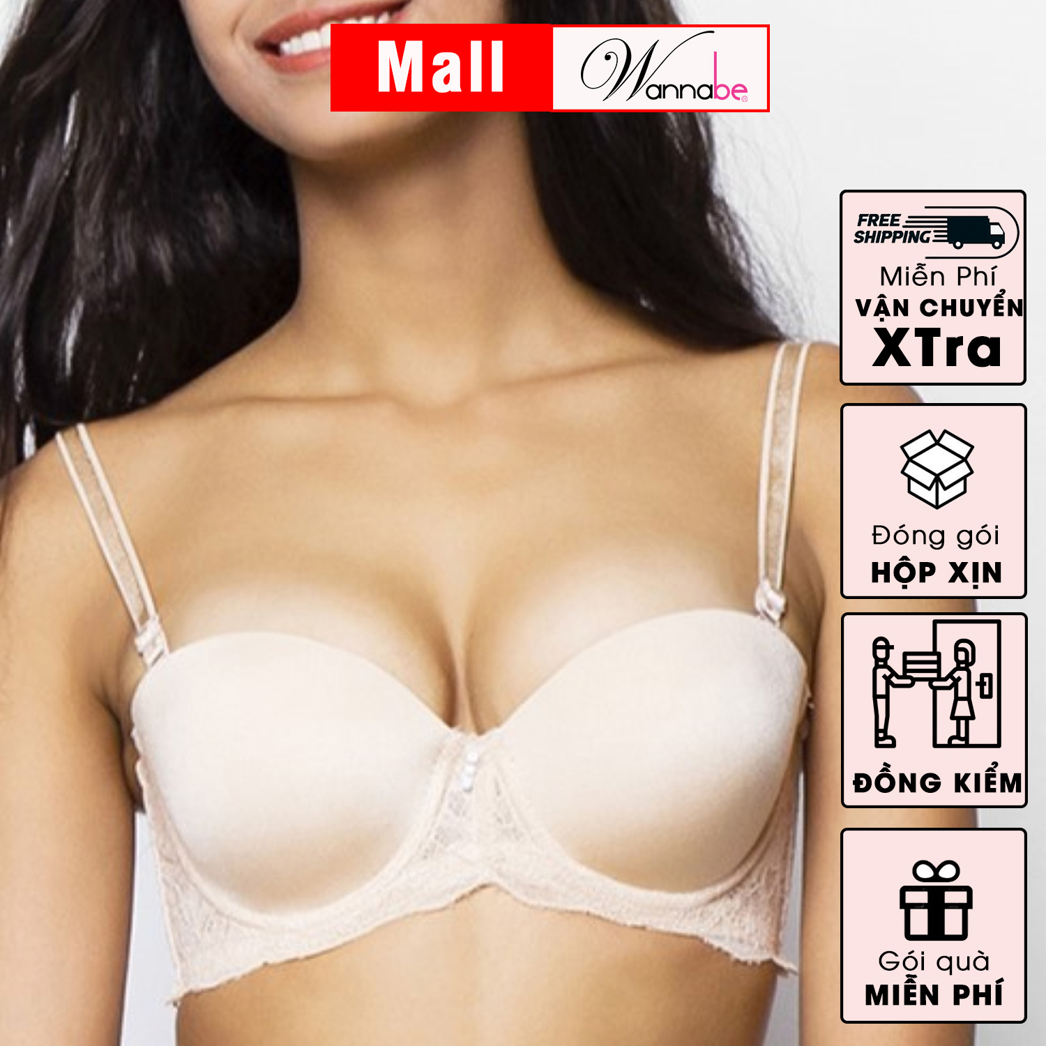 Áo ngực mút vừa WANNABE ANT18 áo chíp cúp ngang tháo dây chống tuột chống xệ khi mặc áo quây áo ống áo trẹt vai, hở vai