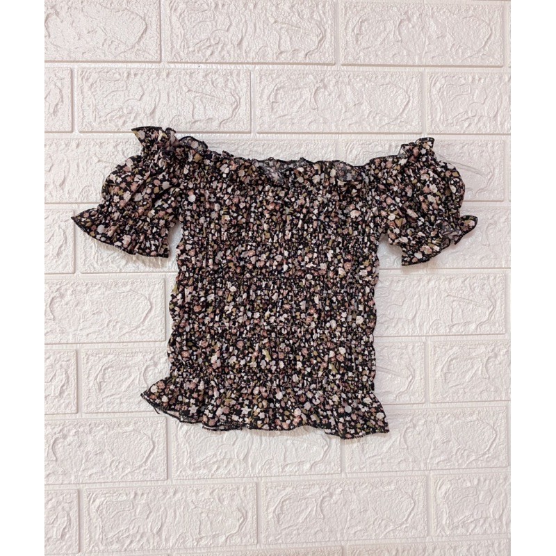 Áo nhún trễ vai hoa nhí, chất voan đẹp
