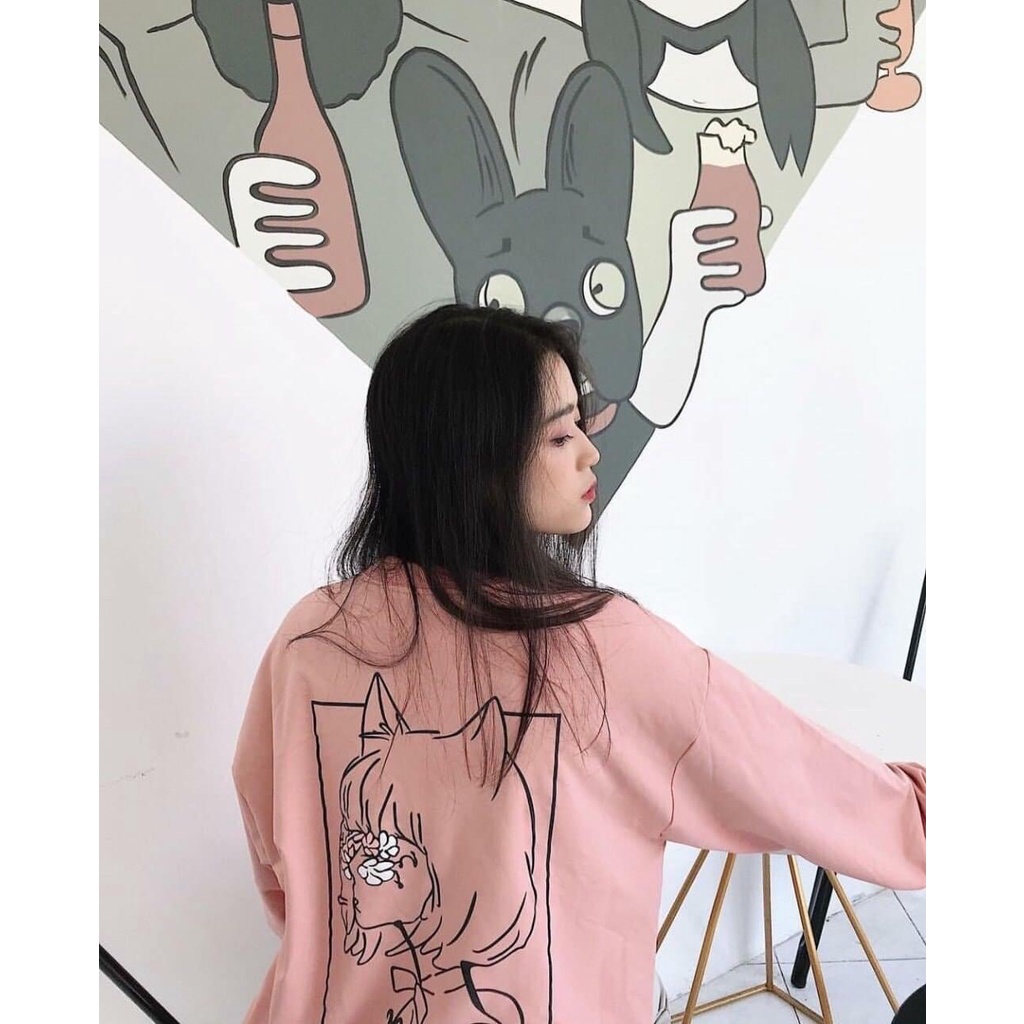 Giới thiệu Áo nỉ sweater hoạ tiết hình màu hồng Forgirl dáng rộng