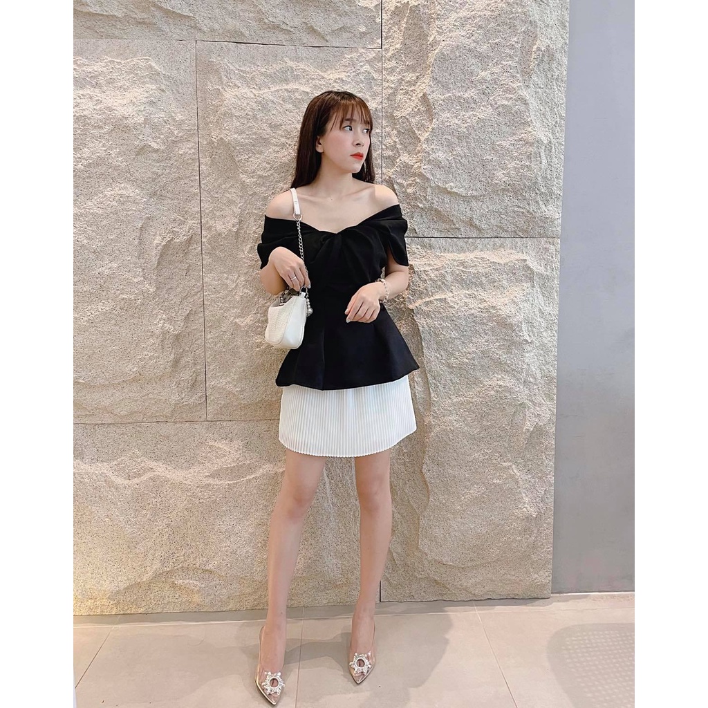 Giới thiệu Áo nơ xoắn ngực 2 màu trắng/đen 2 kiểu mặc siêu sang