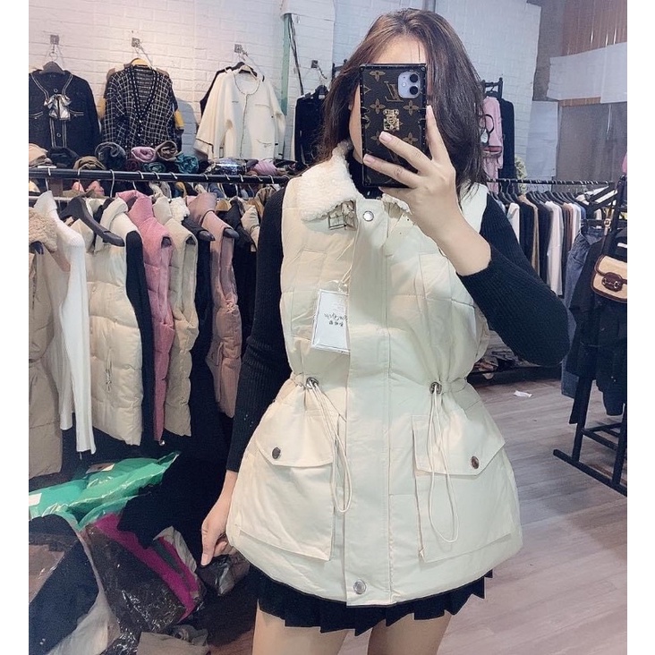 Áo phao gile cổ lông rút eo ( Kèm ảnh thật+ video)
