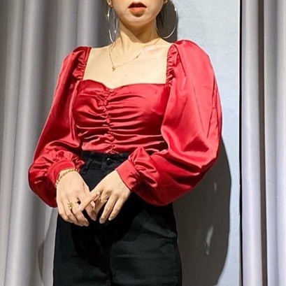 Áo phi lụa phối nhún nút xinh xắn cho bạn gái