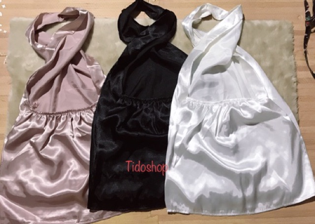 Áo kiểu chéo dây cột nơ sau cổ. Áo dạng yếm vải phi bóng cực sexy và sang chảnh.
