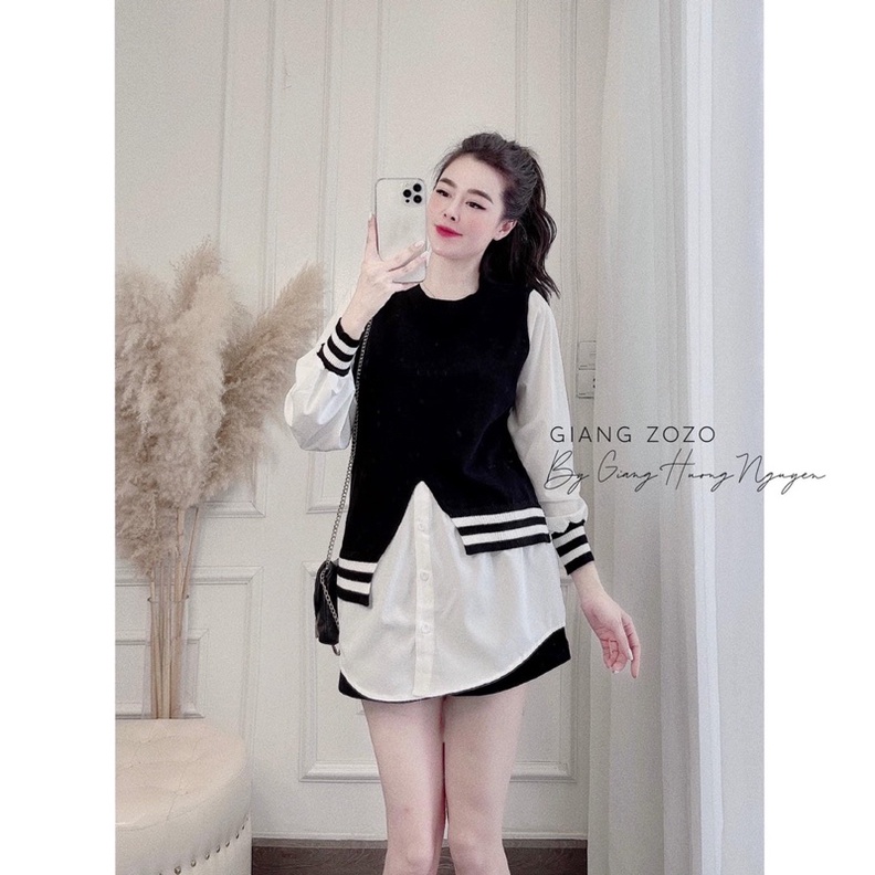 Thời Trang Nữ > Áo > Áo sơ mi || Áo phối sơ mi pha len vạt lệch