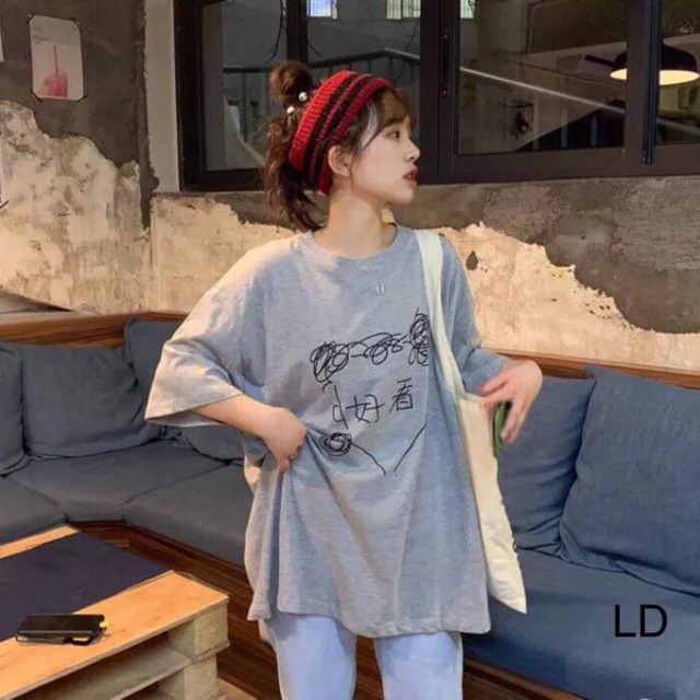 Áo phông đầu cô gái chữ tàu