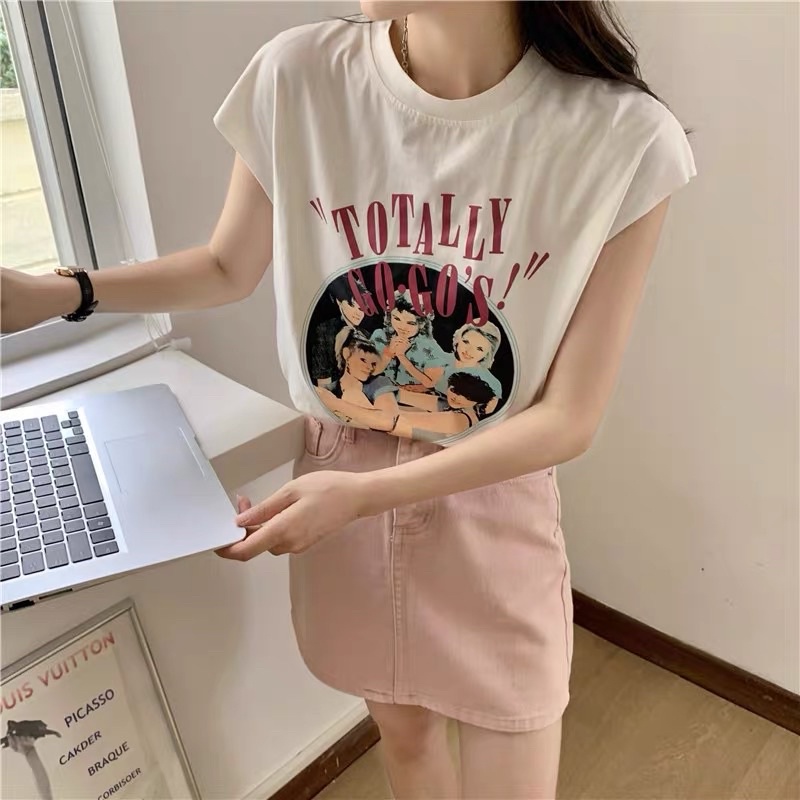 Thời Trang Nữ > Áo > Áo thun || Áo phông không tay phiên bản hàn in retro