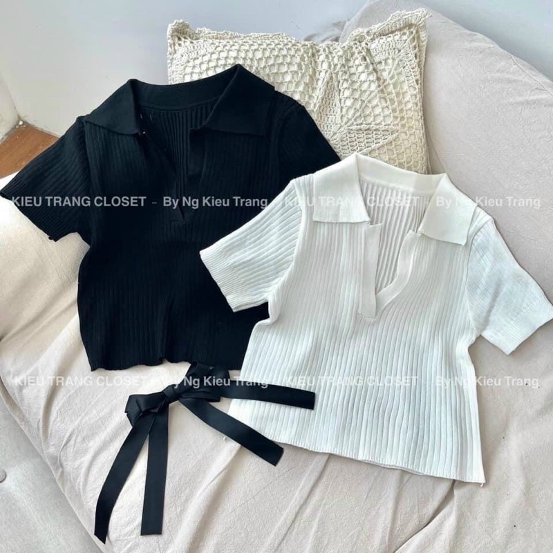 Thời Trang Nữ > Áo > Áo polo || Áo Polo crotop cổ V co giãn kèm hình thật