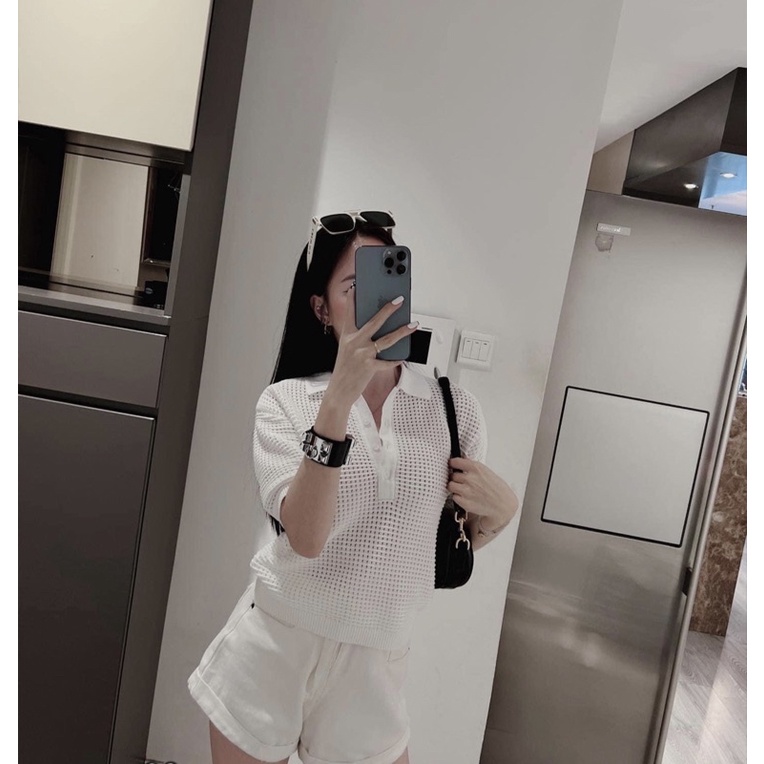 Polo lưới New In của mùa năm nay, xinh lắm, phối cùng Jean hay cùng chân váy đều xinh. Tuy là lưới nhưng không bị lộ áo trong đâu mng nha!