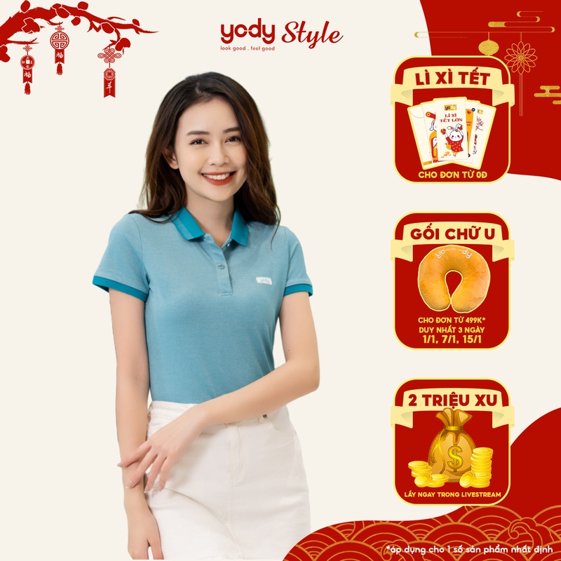 Áo Polo nữ YODY Phối Bo Mắt Chim Basic - Áo thun polo cá sấu chất vải Cotton co dãn 4 chiều - APN3340