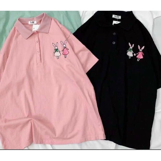 Giới thiệu Áo polo thun cổ trụ UNISEX, áo phông cổ trụ thêu hình couple thỏ hạnh phúc XU05